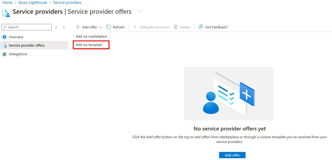 - Click on view service provider and next click Add offer in service provider offers.